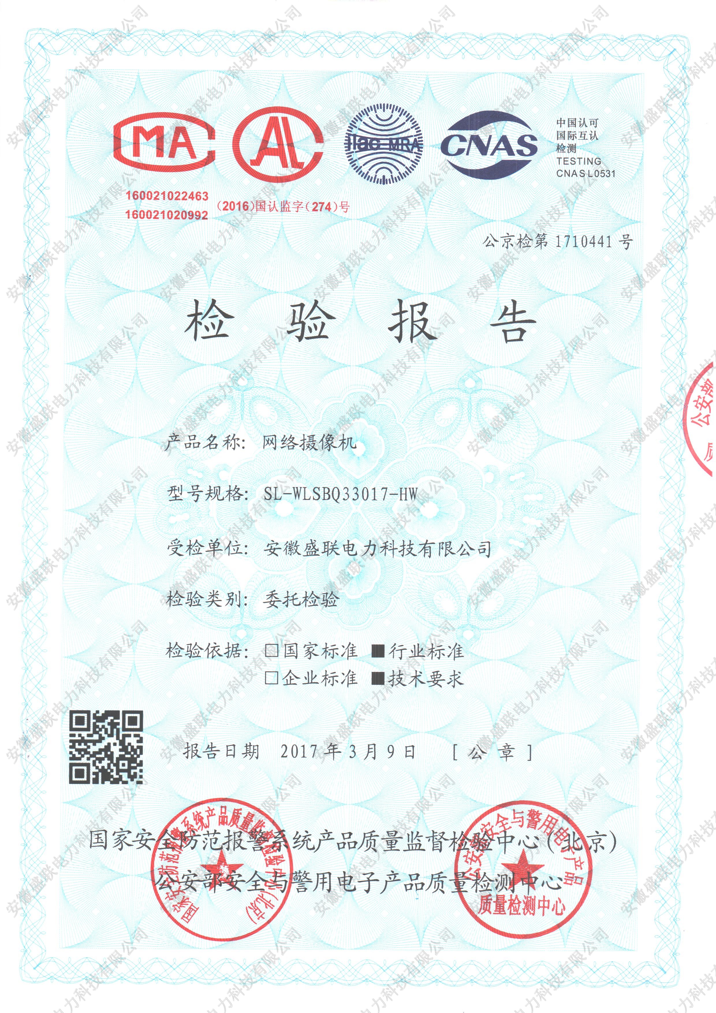 网络摄像机检测报告(行业标准)
