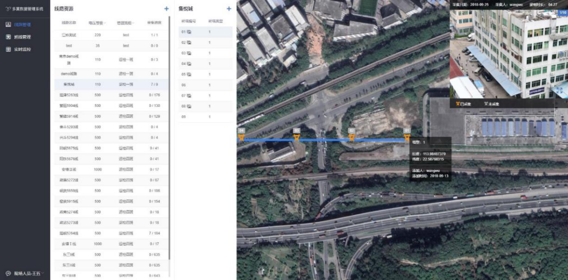 多个无人机同时作业需要考虑的因素十分复杂,如航线重叠,空域划分,碰撞事故预防和多机监控等。四机航母内嵌无人机多机协同算法,有效分配各作业无人机空域,建立独立的信息通道,保障四架无人机同时安全高效地对四座杆塔精细巡检。