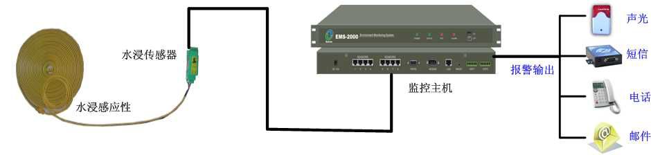 监测实现:在机房易漏水的下方或周围铺设漏水感应线,将感应线接到漏水控制器上,再将控制器的输出信号接到EMS系列环境监控主机。这样当漏水感应线检测到有水时,系统会立即报警并通知机房管理人员。
