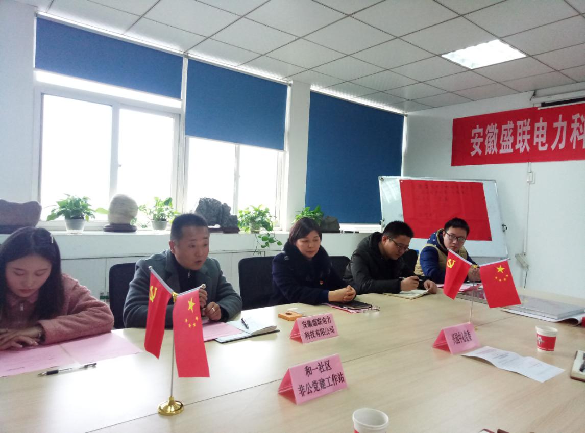 12月26日上午,中共安徽盛联电力科技有限公司支部委员会成立暨第一次党员大会顺利召开。高新区兴园中心党群工作部常务副部长胡朋飞、高新区和一社区党总支书记金斌、安徽盛联电力科技有限公司总经理王文学出席会议,公司全体党员和非公党建工作人员参加了会议。