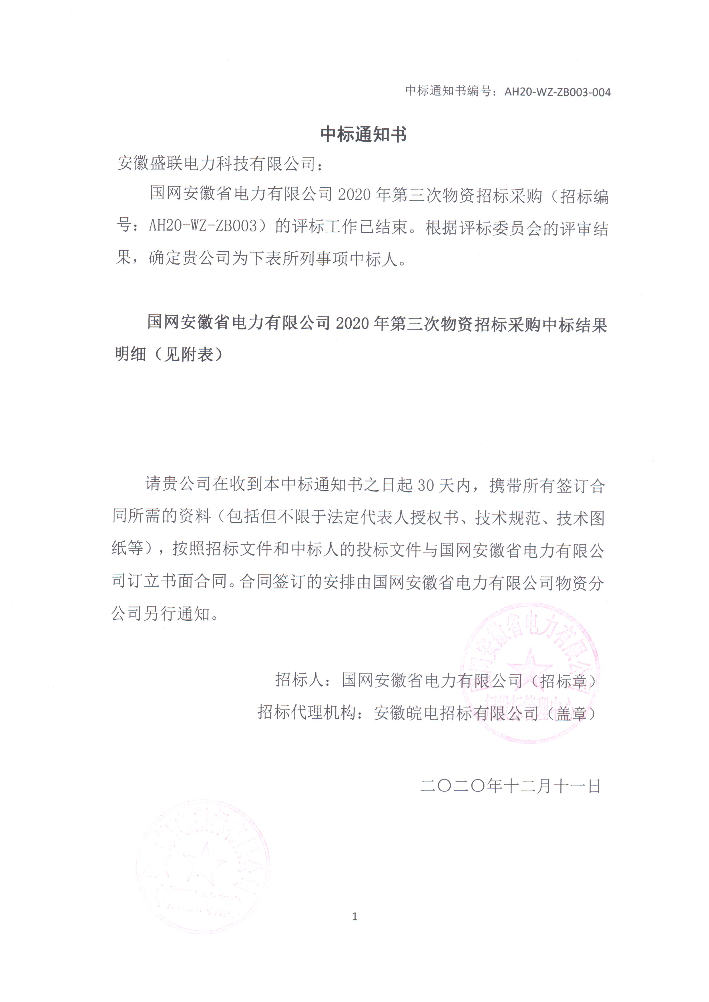 下一文章:热烈祝贺安徽盛联电力科技有限公司在《 国网安徽省电力有限公司2020年第五次电网工程与...