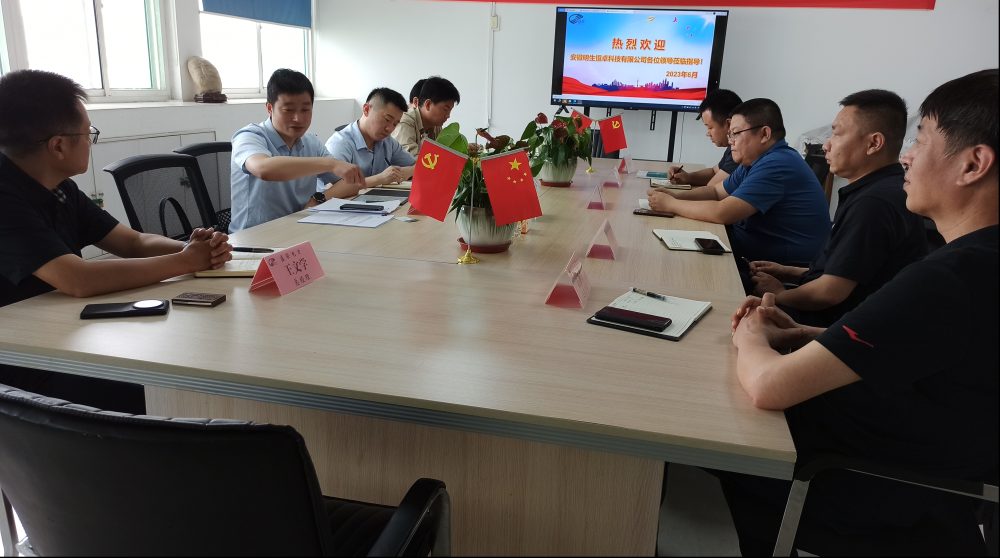 2023年6月29日上午,安徽明生恒卓科技有限公司董事长朱兵、安监部副主任佘祥一行来到盛联电力公司调研考察,同时就公司的安全生产管理及在建的配电自动化设备安装调试项目情况与盛联团队进行沟通和交流,公司总经理王文学、运营总监石燕中及市场和技术部门负责人及配自项目负责人共同出席了会议。