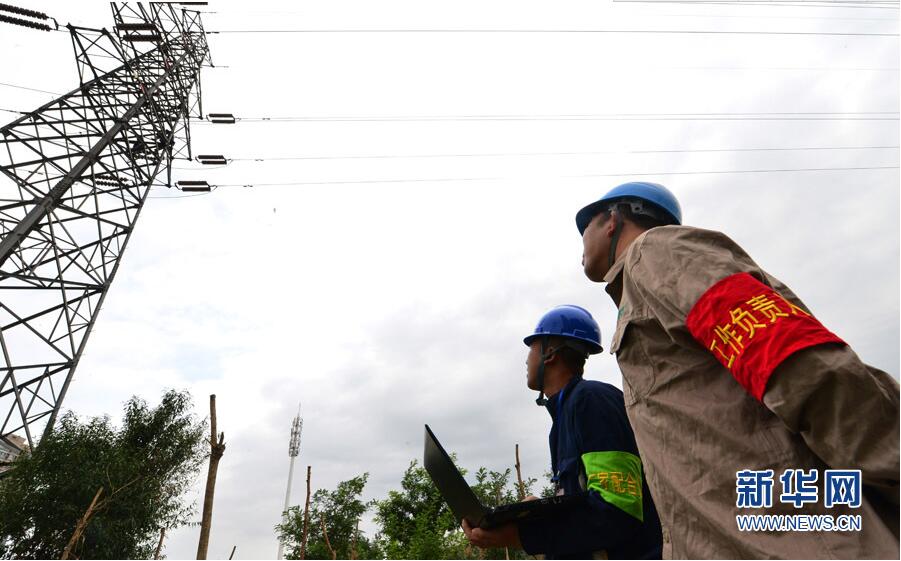 9月18日,在滨海新区胡家园地带的110千伏大塘线,国家电网天津滨海供电公司的几名工作人员正在对19、19、21、22号杆塔开展金属探伤检测工