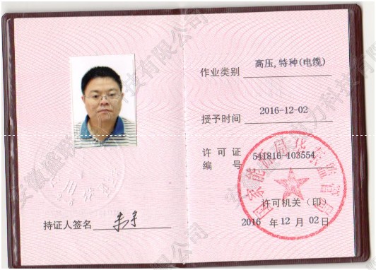 高压、特种(电缆)证书