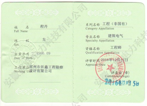 初级职称证书